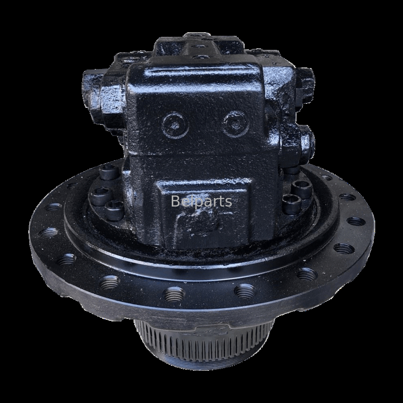 The excavator travel motor is a hydraulic-driven component that converts hydraulic energy into mechanical rotation. High-pressure oil from the pump enters the motor, actuating pistons or gears to generate torque. A built-in reduction gear (often planetary) increases output force while reducing speed, driving the sprocket and tracks.